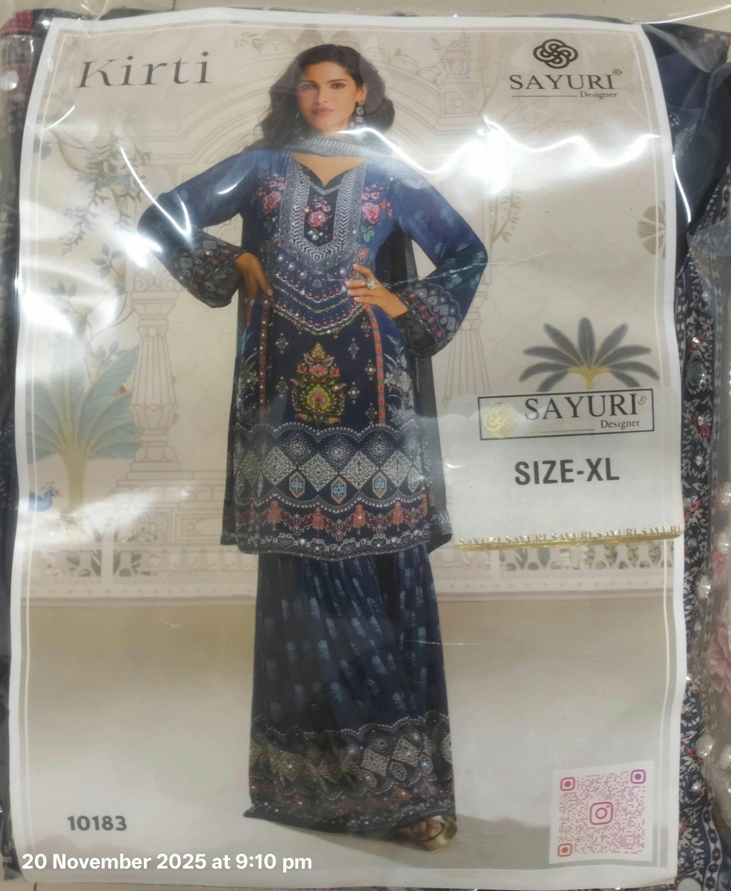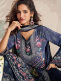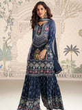 Navy Blue Traditional Mirror Work Crepe Silk Sharara Suit
