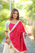 Dupatta work : Foil Bandhej Print with Weaving design lace border also come with tassels