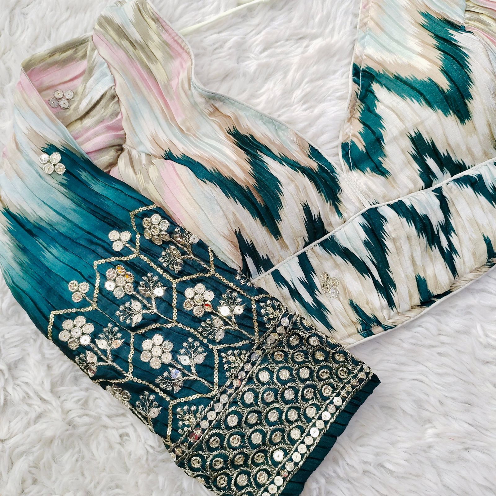 Presenting Heavy sequence work with Beautiful flower print all over crush pattern blouse r