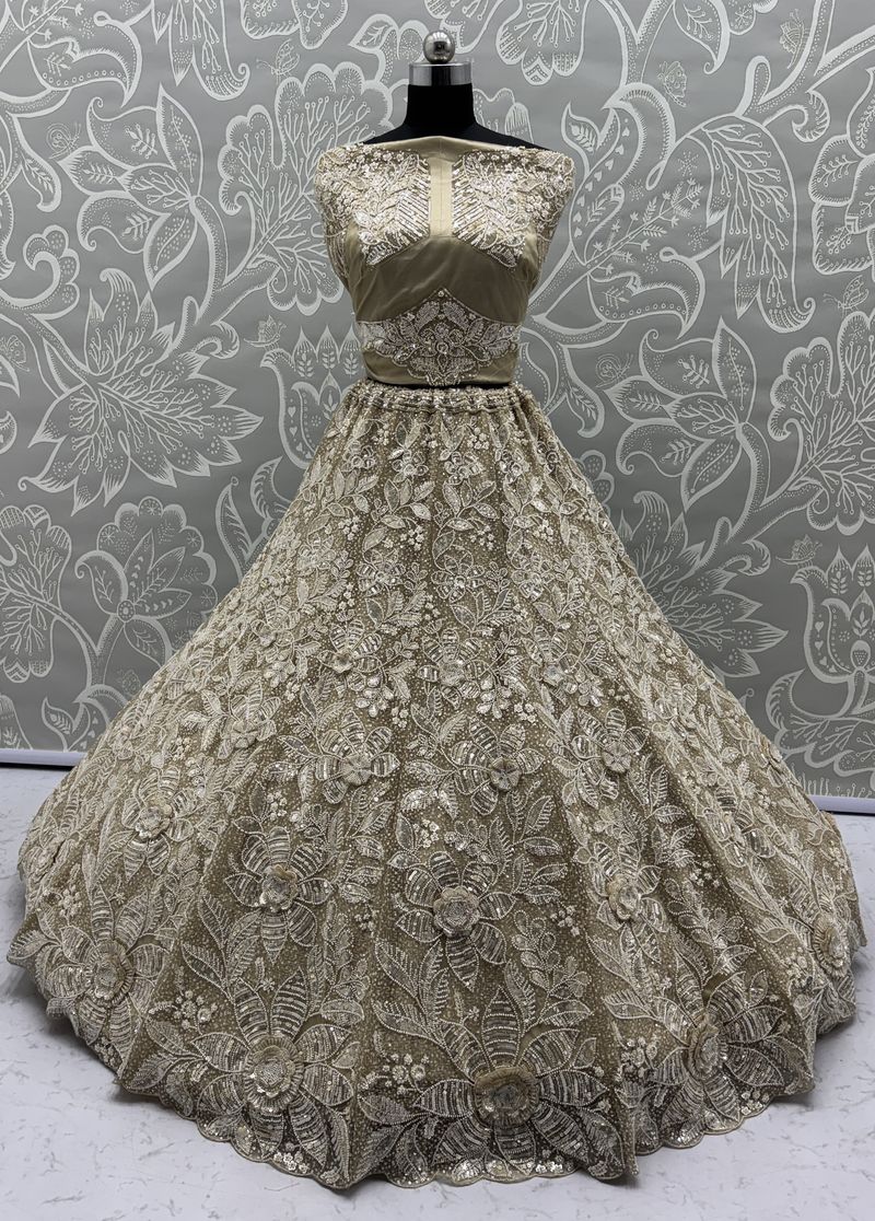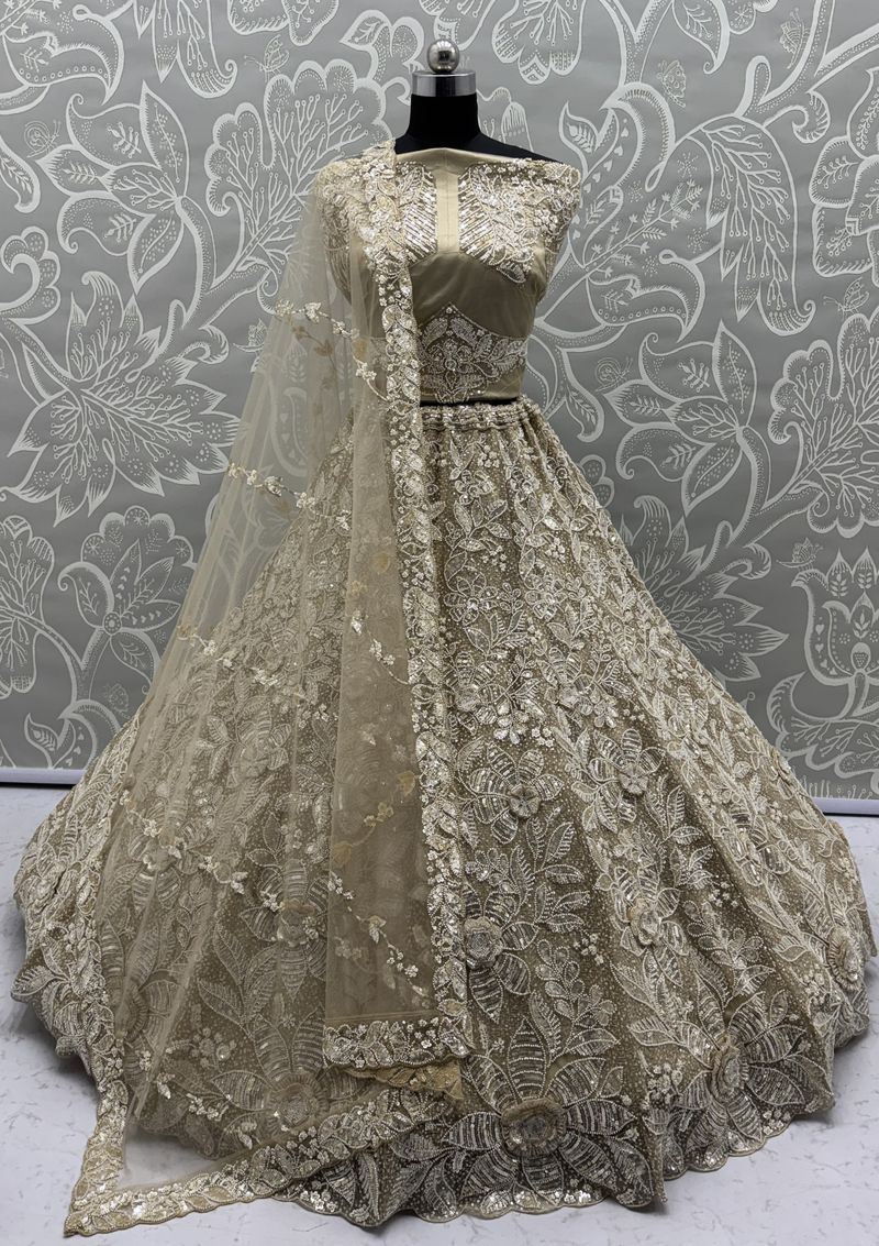 Off White Pure Soft Net Heavy Embroidery Work Bridal Lehenga