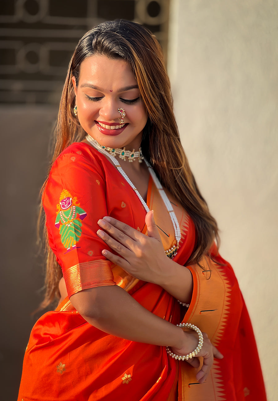 Orange Blue Zari Woven Vitthala God Special Paithani Silk Saree