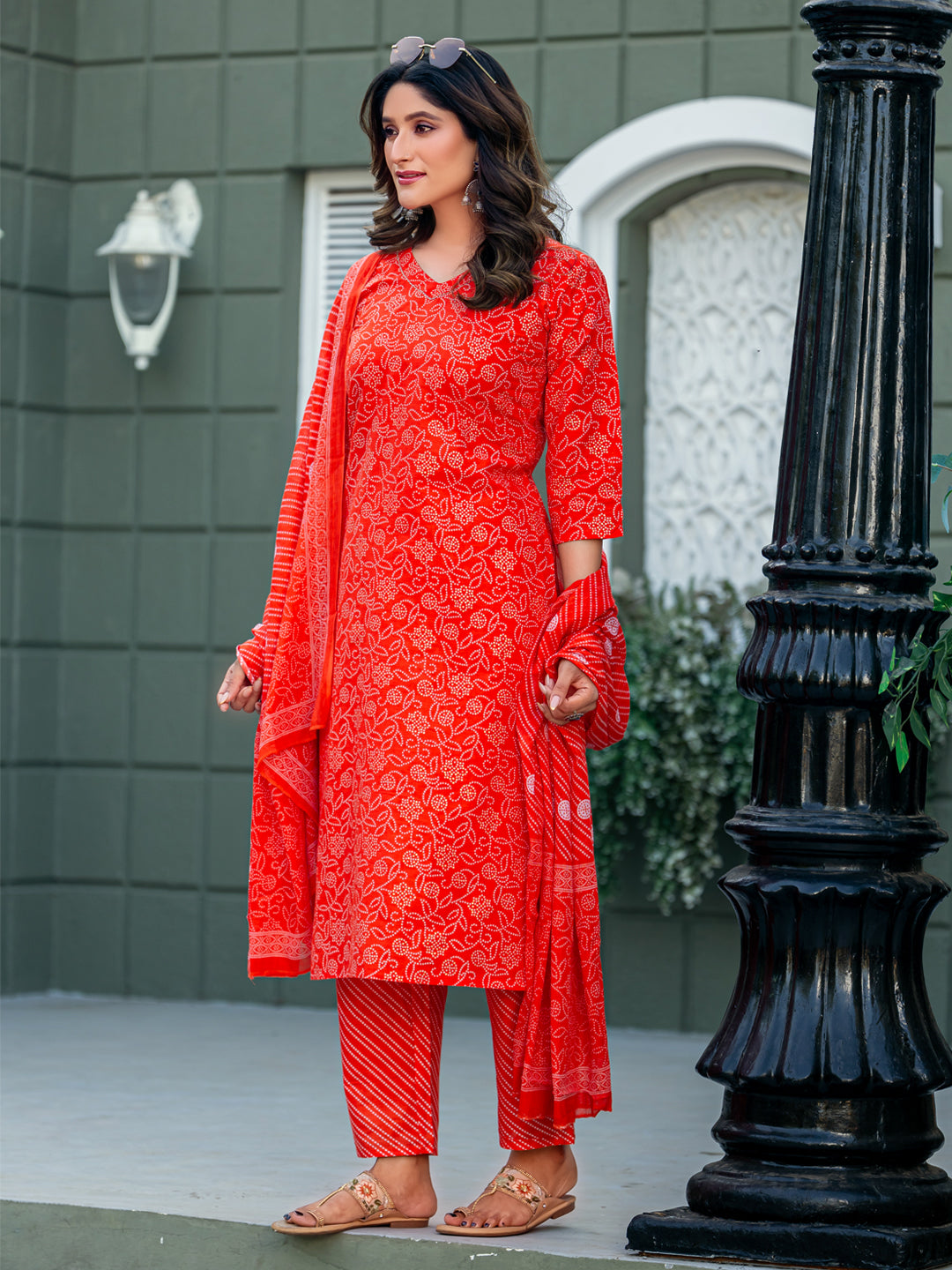 Orange Pure Soft Cotton Blend Print Salwar Suit