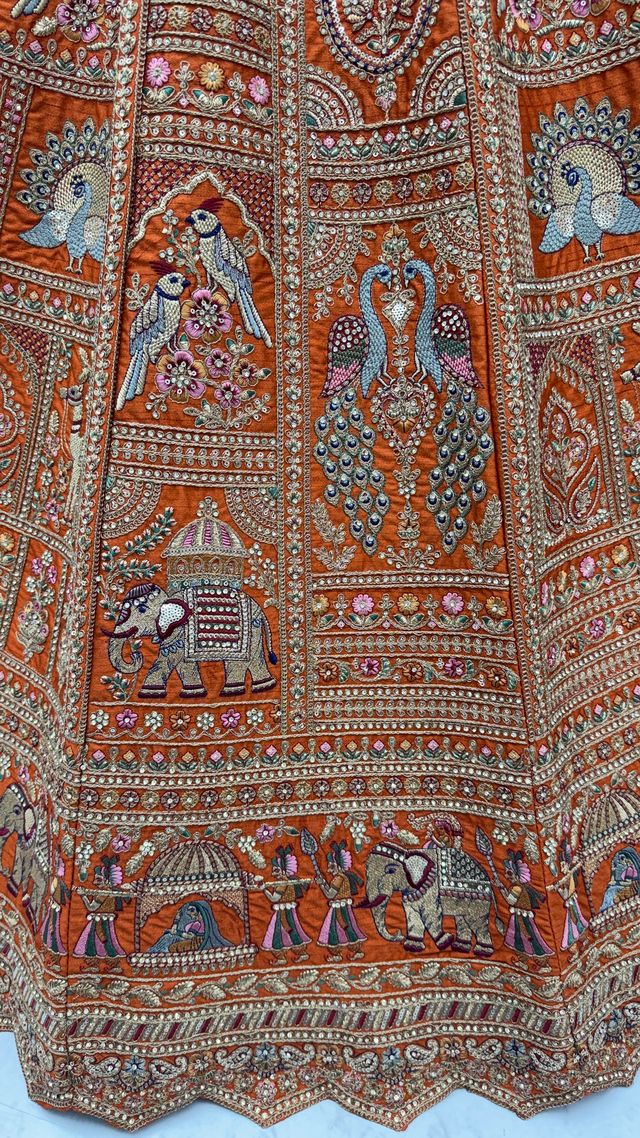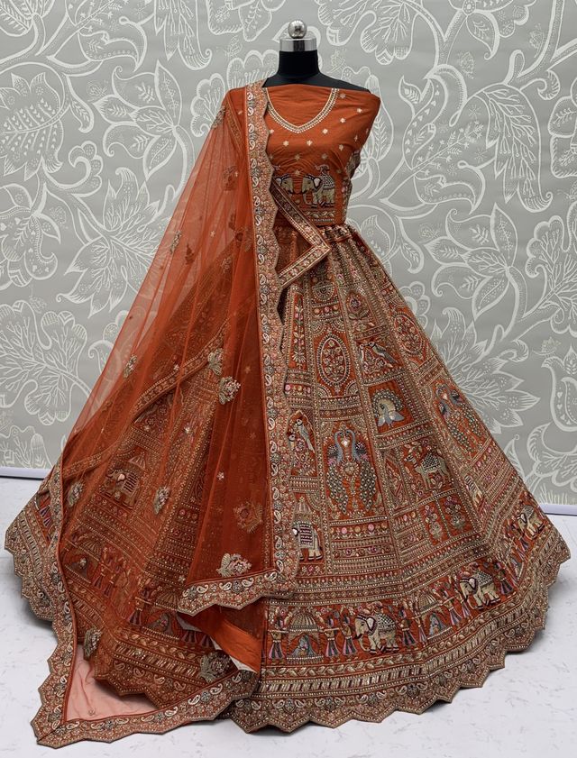 Orange Pure Soft Gadwal Silk Heavy Embroidery Work Bridal Lehenga