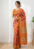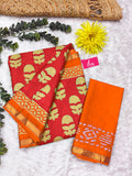 Orange Pure Soft Mal Mal Cotton Bagru Block Print Saree