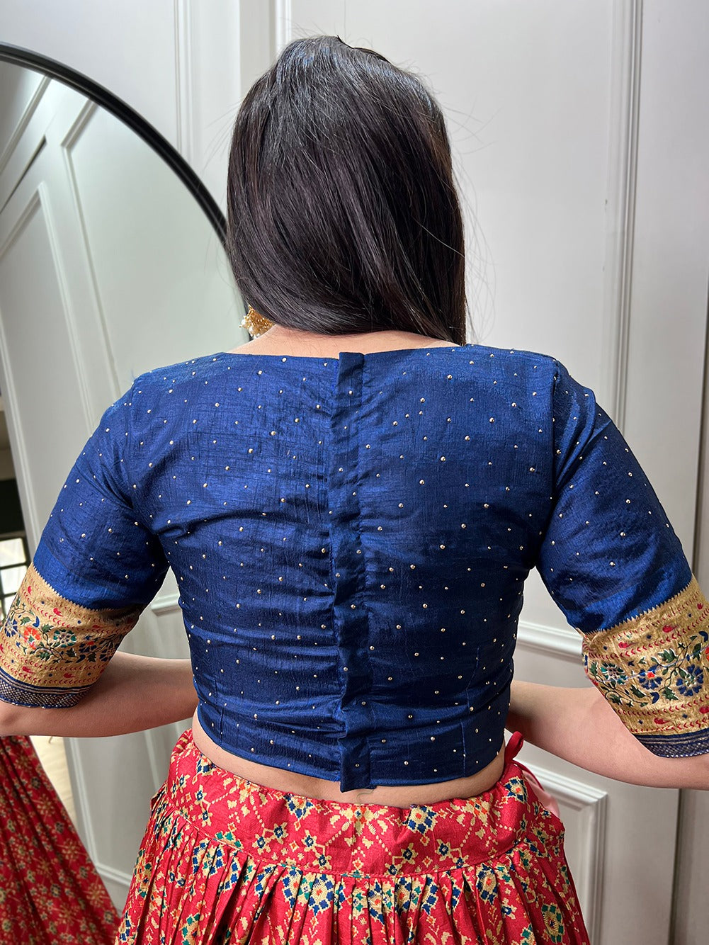 Party Wear Designer Captivating Red Ikkat Patola Print Lehenga Choli