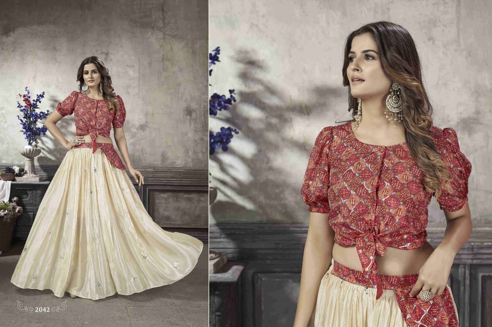 Party Wear Designer Crop top Style Lehenga Choli Frill & Flare Vol. 5 Design 2042