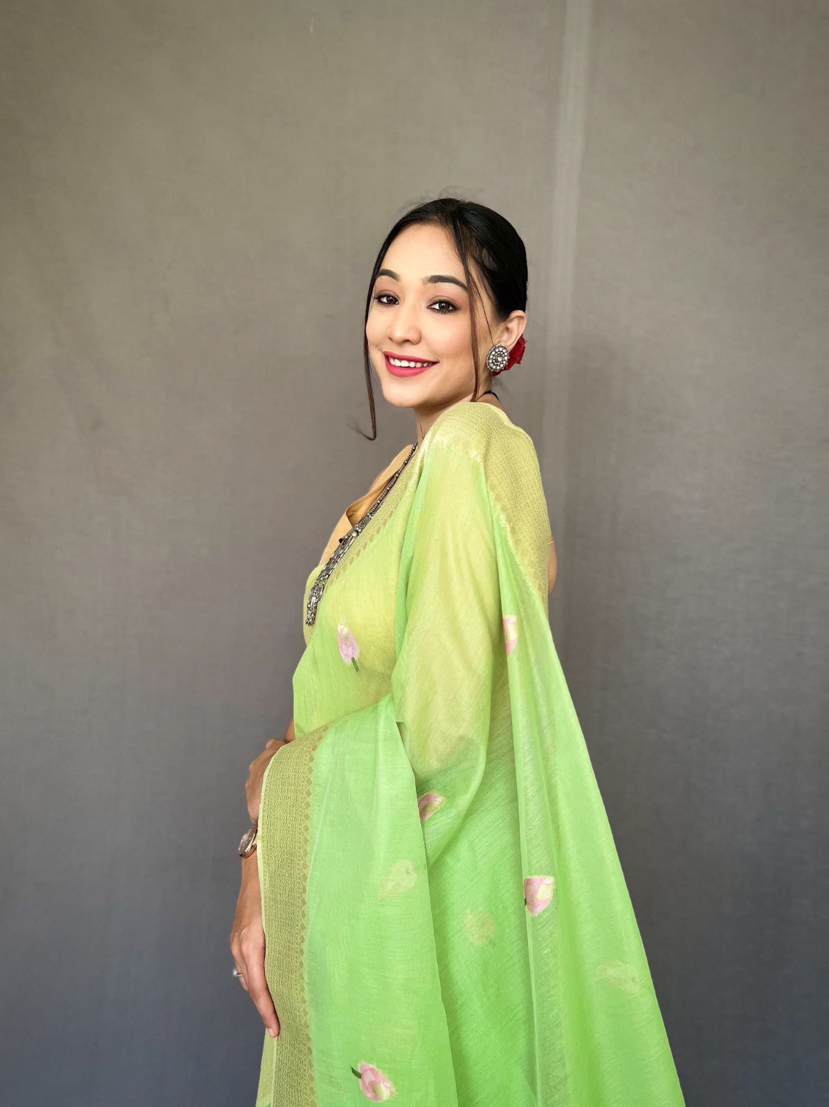 Party Wear Designer Lotus Pure Cotton Linen Saree