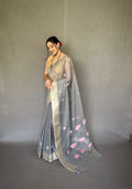 Party Wear Designer Lotus Pure Cotton Linen Saree