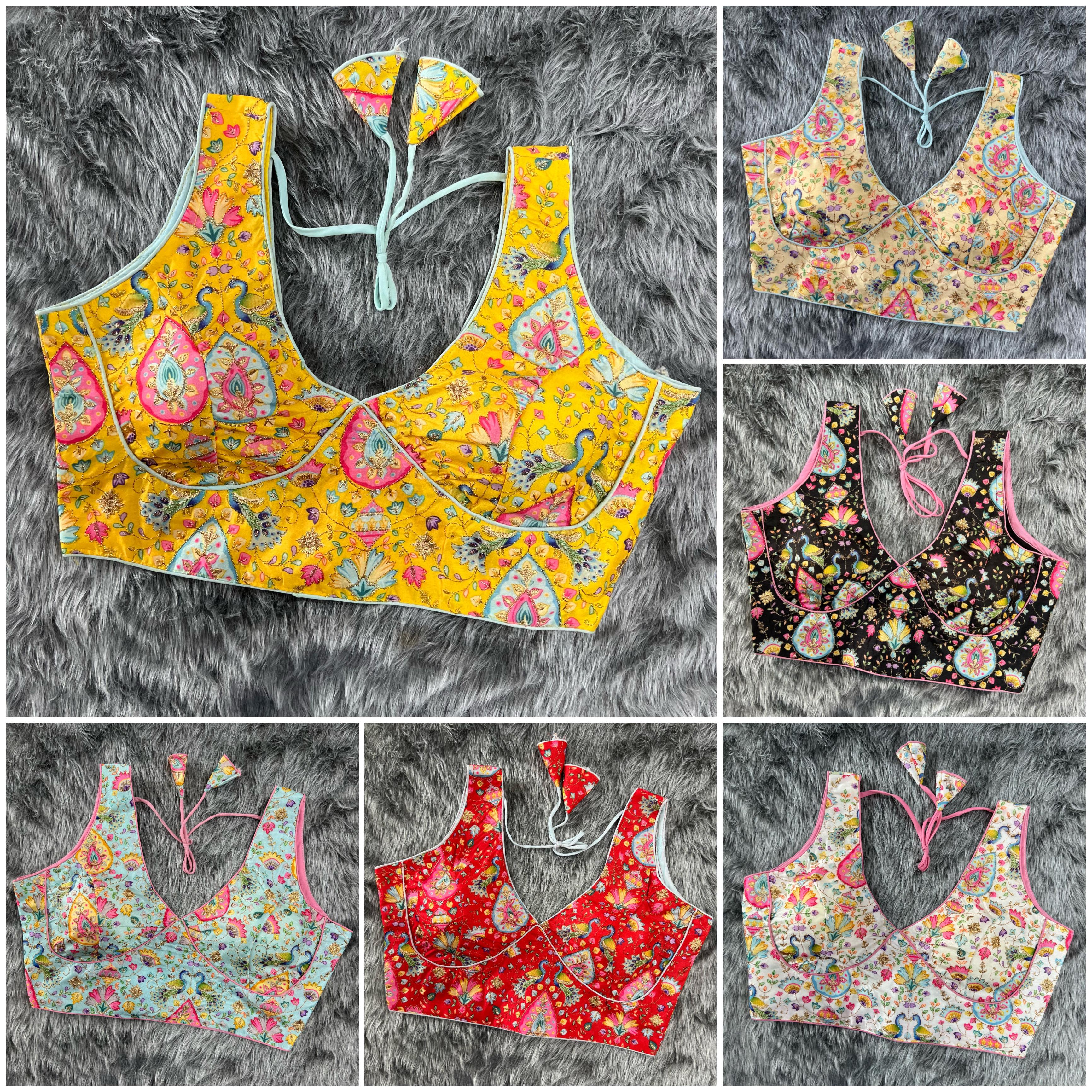 DESGINE:-- Superb multy colour prints match on all colour sarees and lengha, Back open hooks.