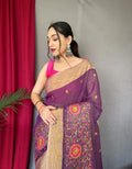 Fine colorful embroidery jaal design done on all over ther saree with buttis. Zari pallu and border.