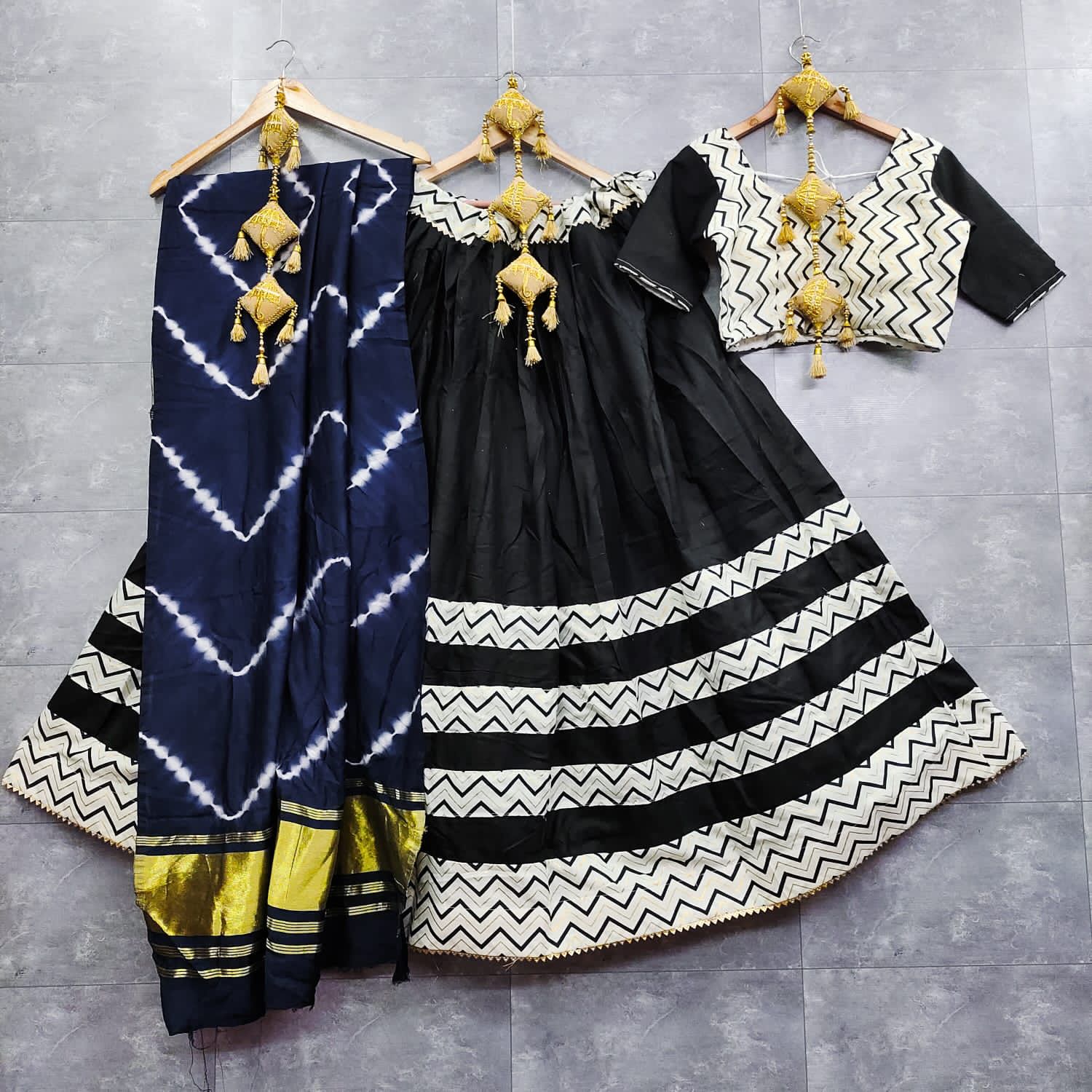 Heavy cotton fabric mill print with foil print patola Chaniyacholi With Fancy Design With Attractive Combination