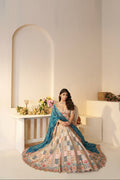 Pastel Bridal Lehenga with Sky Blue Dupatta
