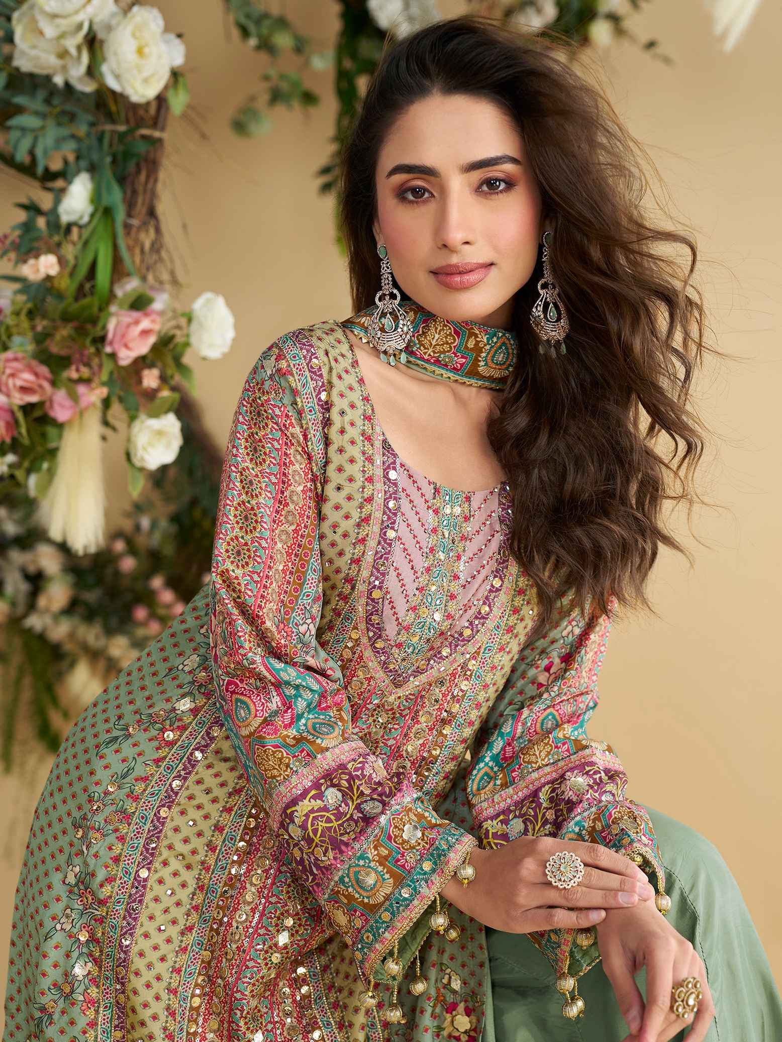 Pastel Green Multi-Printed Crepe Silk Palazzo Suit