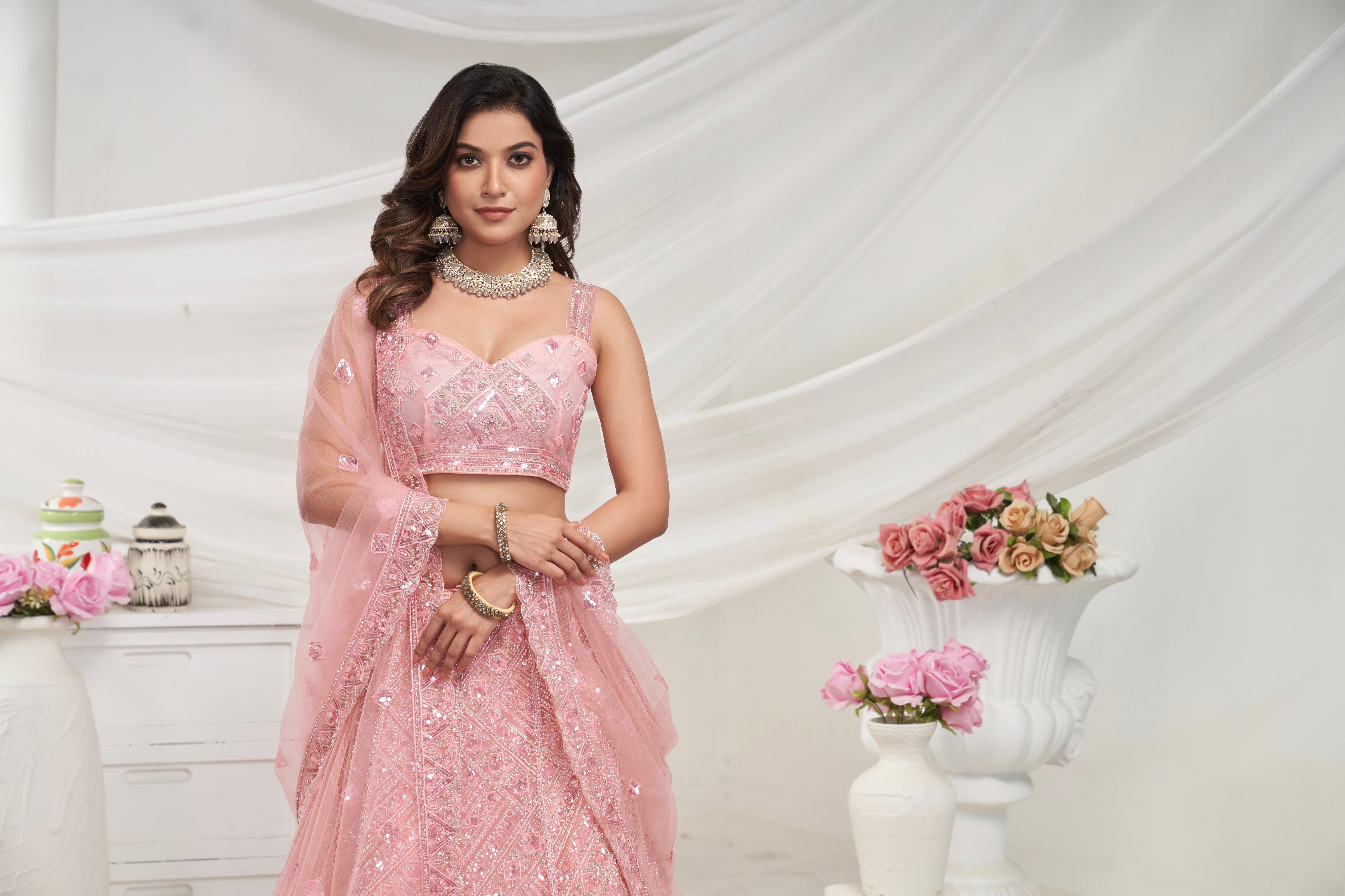 Elevate your bridal look with our stunning peach net lehenga ensemble, meticulously crafted to enhance your elegance on your special day. This semi-stitched set combines intricate detailing with luxurious fabric, ensuring you stand out with grace and style. Here’s a closer look at what makes this lehenga a must-have for every bride: