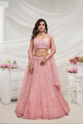 Peach Net Lehenga Set with Sequin & Cut Dana Embellishments