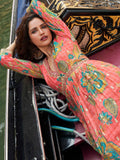 Peach-Pink Floral Chinon Silk Anarkali Gown with Dupatta