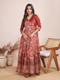 Peach Pure Silk Blend Kalamkari Anarkali Gown