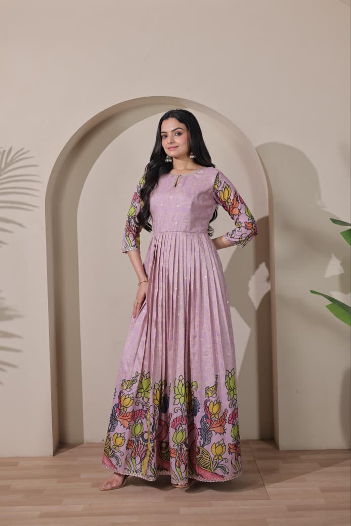 Peach Pure Silk Blend Kalamkari Print Long Gown