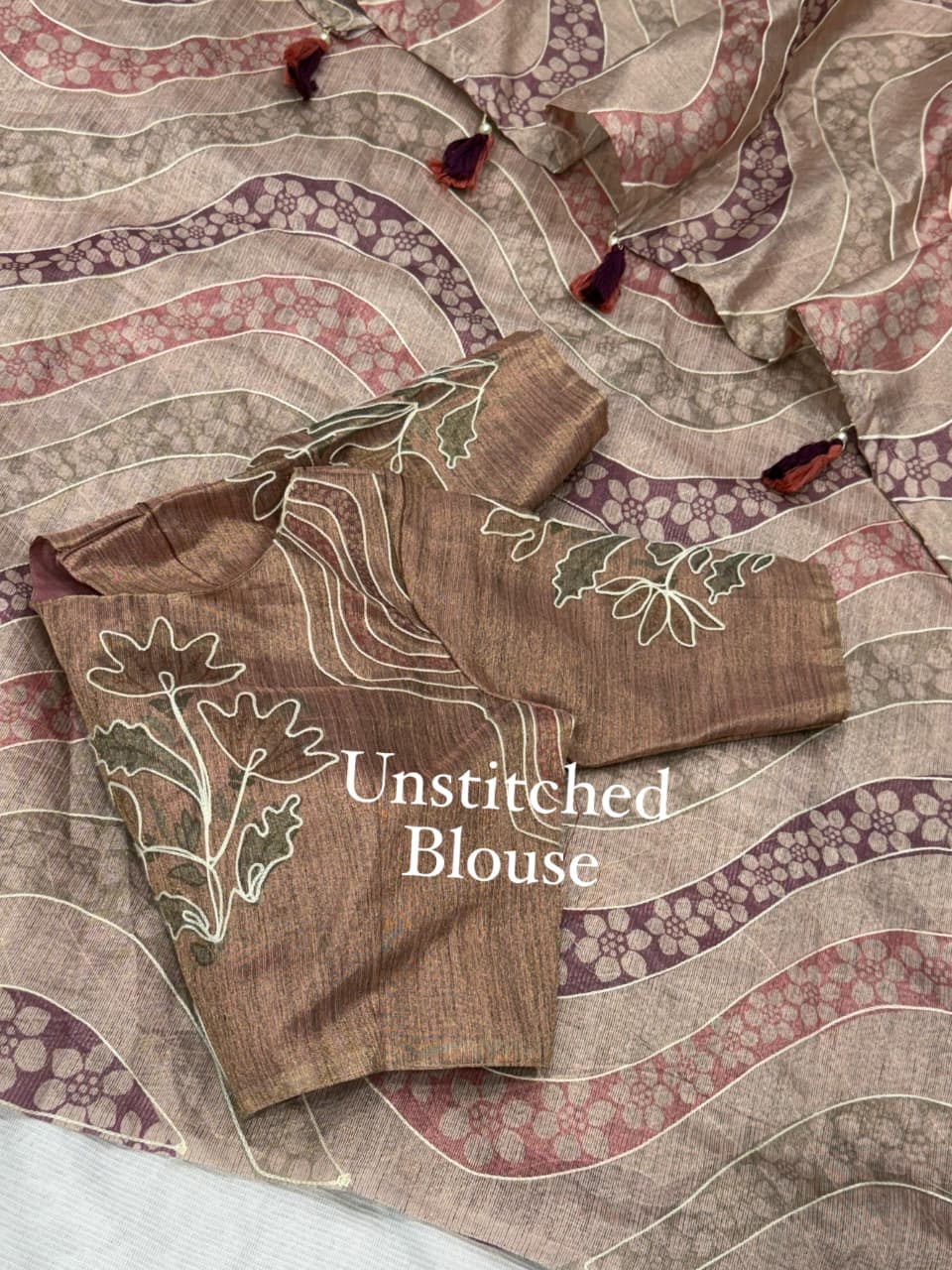 Peach Pure Soft Linen Copper Zari Cotton Saree
