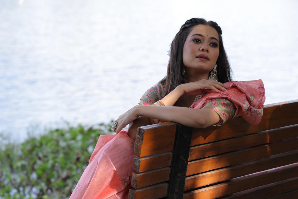 Peach Pure Soft Tussar Silk with Floral Print Tussar Saree