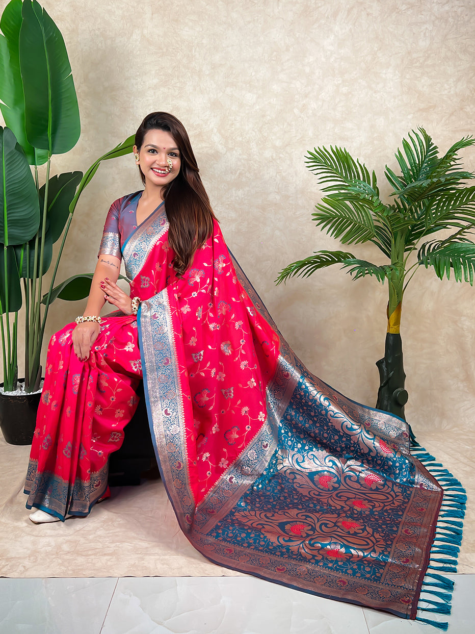 Pink Banarasi Jaal Zari Woven Silk Banarasi Saree