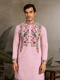 The Pink Embroidered Kurta for Men is crafted from luxurious viscose silk, adorned with intricate multicolored embroidery and sequins that enhance its festive charm. Its pastel pink hue lends a fresh, elegant touch, making it perfect for mehendi ceremonies, weddings, and other celebratory events. This kurta balances traditional craftsmanship with contemporary style, ideal for modern grooms and festive wardrobes.