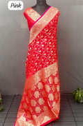 Pink Pure Banarasi Mushro Satin Silk Saree