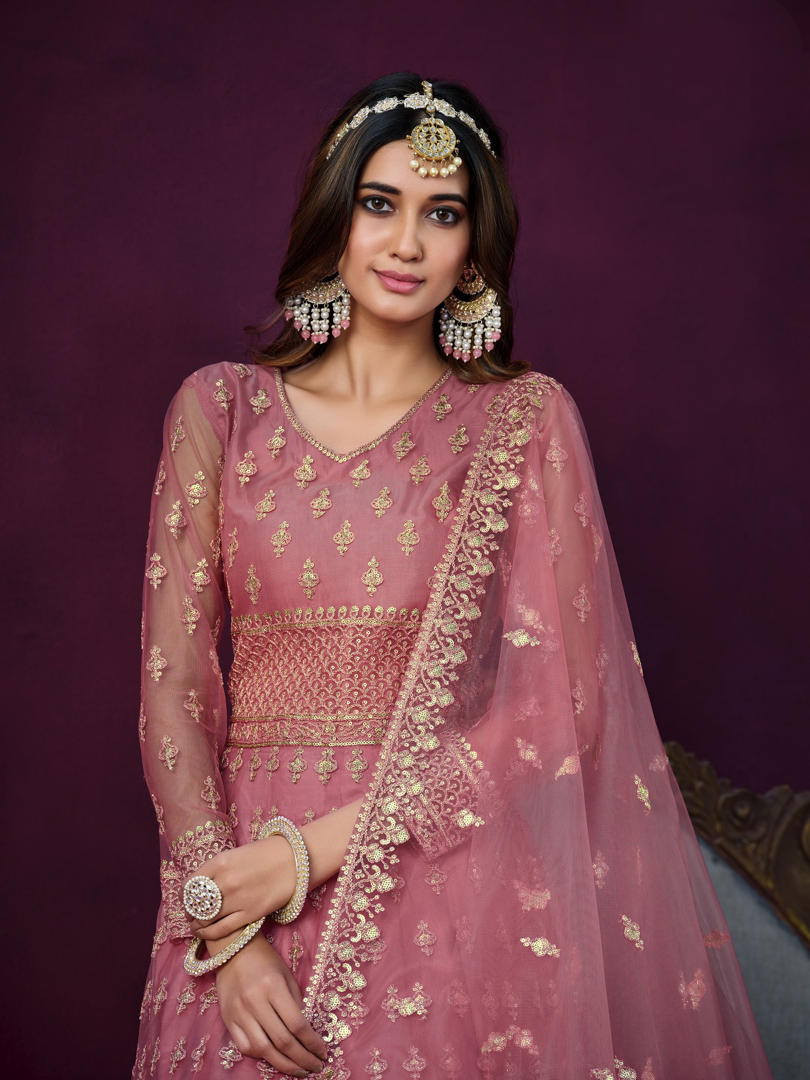 Pink Pure Georgette Long Floor Length Embroidered Work Readymade Gown