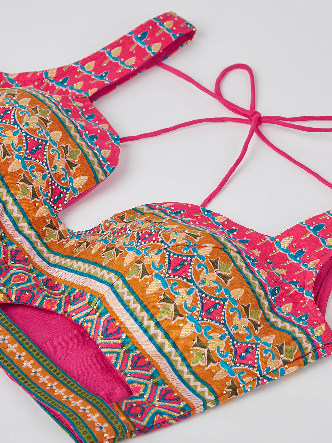Pink Pure Georgette Position Printing with & Stone work Lehenga Choli