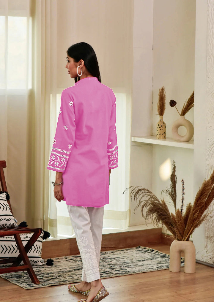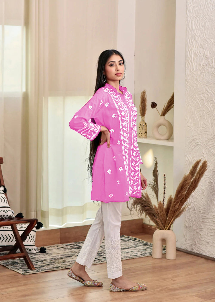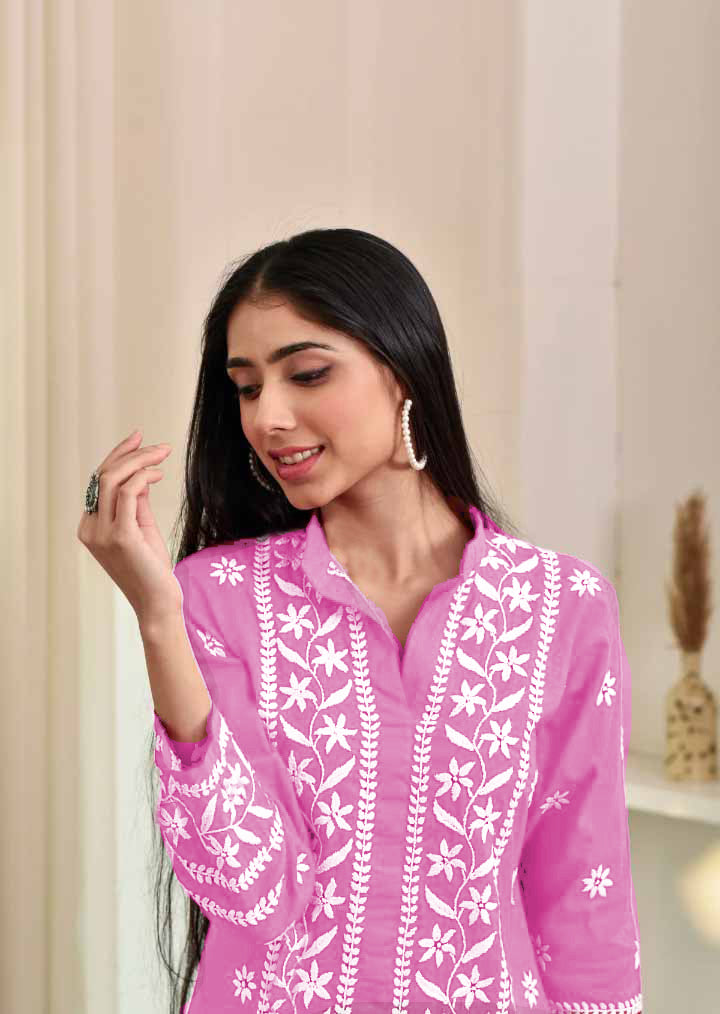 Pink Pure Heavy Reyon with Chikankari Embroidery Work Plazo Suit