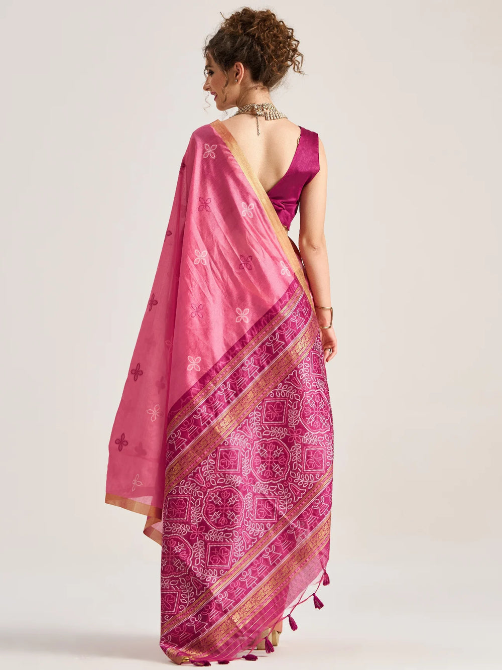 Pink Pure Soft Art Silk Handloom Bandhej Print Saree