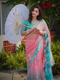 Pink Pure Soft Georgette Handwork Embroidery Saree