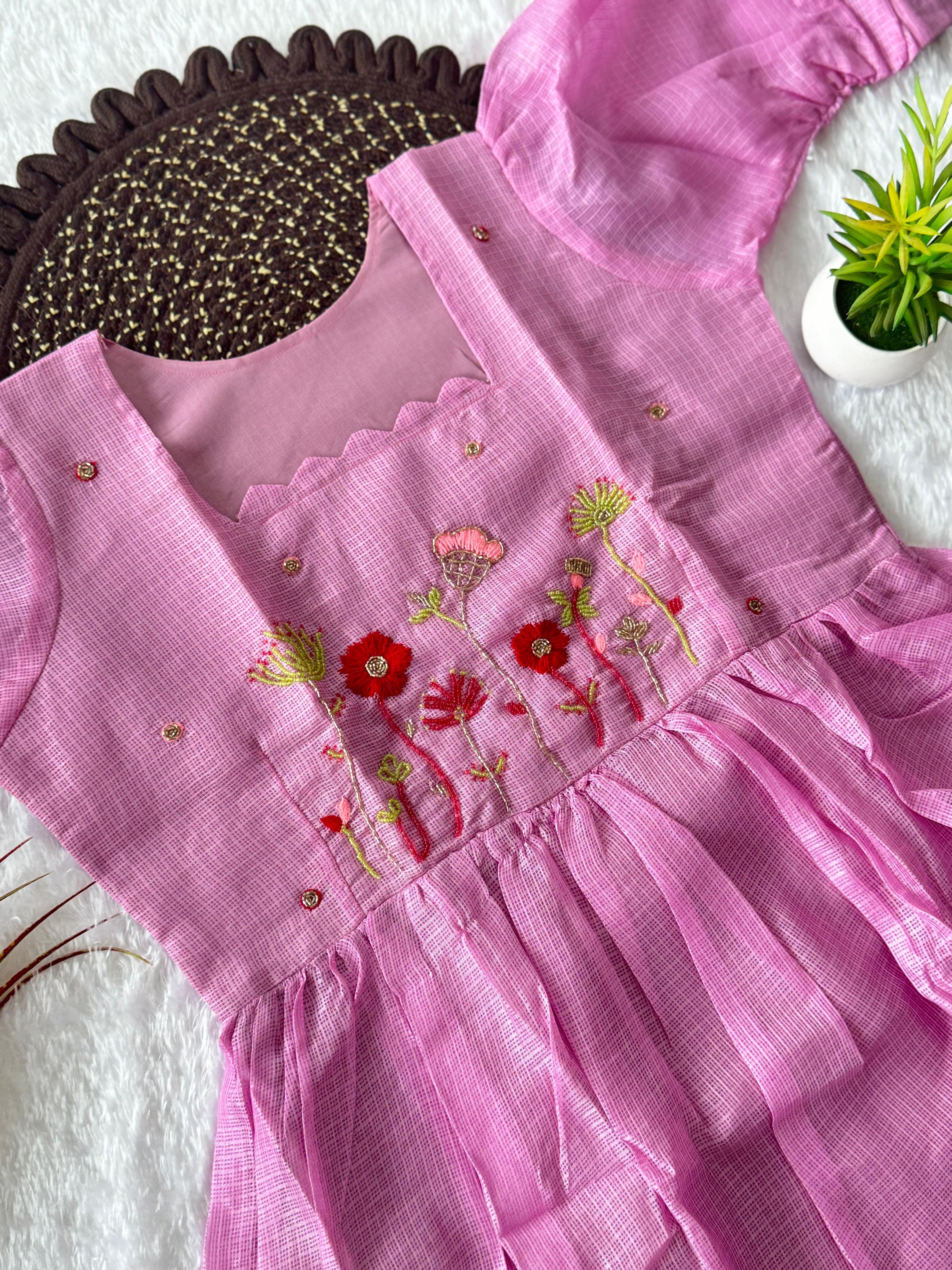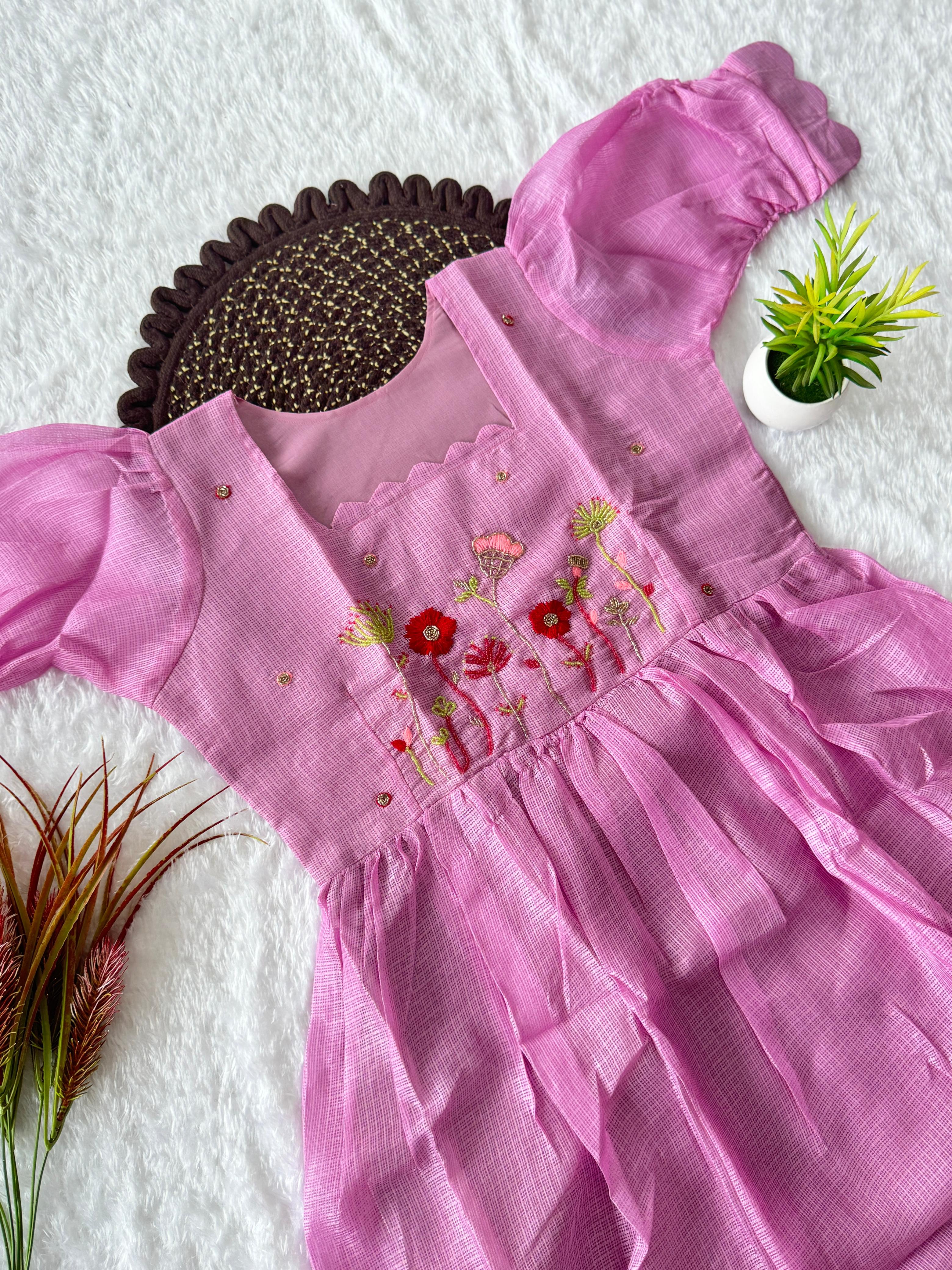Pink Pure Soft Kota Checks Long Readymade Gown