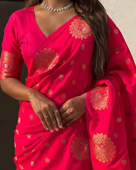 Pink Pure Soft Munga Silk Handloom Weaving Saree