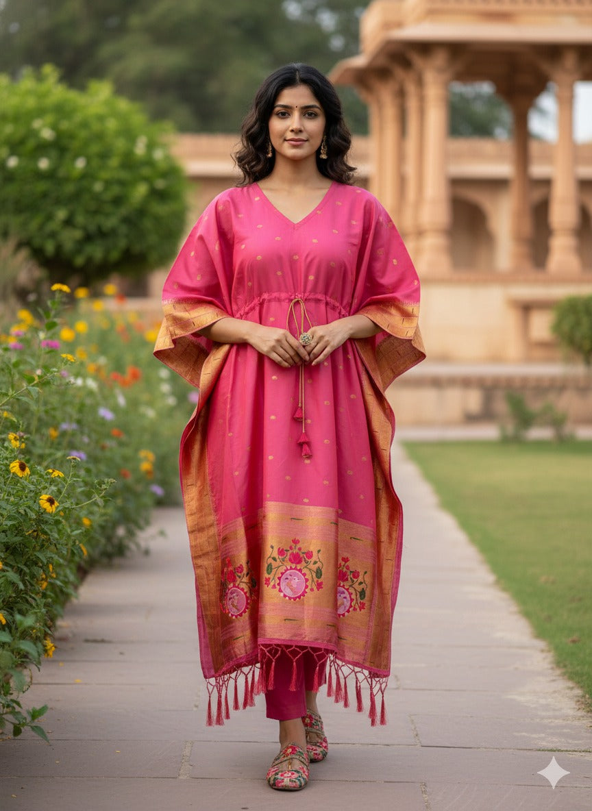 Pink Pure Soft Soft Silk Paithani Kaftan