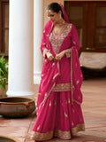 Pink Real Chinon Heavy Embroidered Sharara Suit with Dupatta