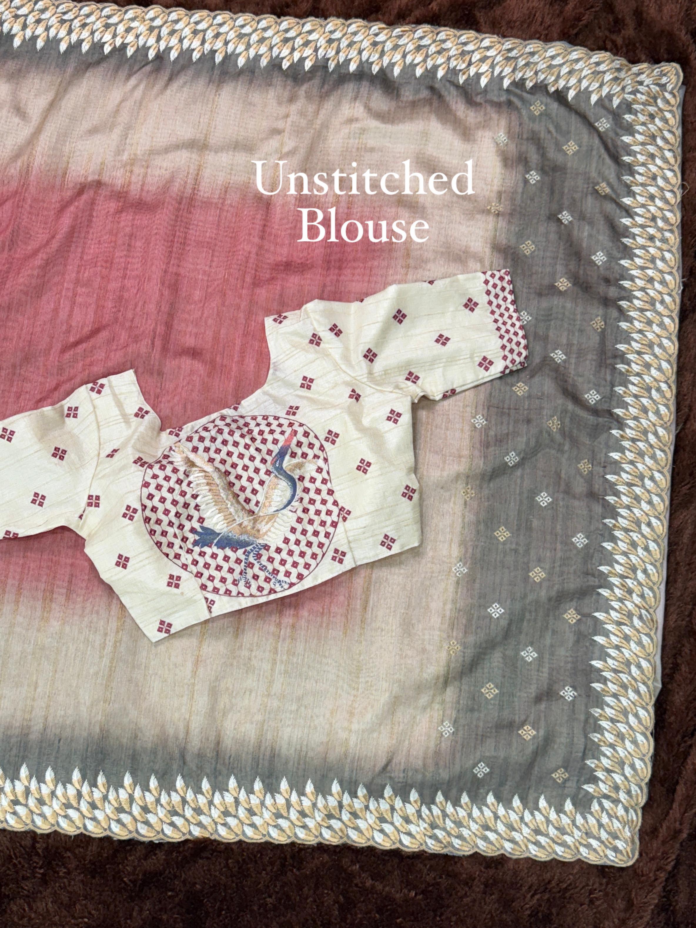 Pink Shaded Pure Tussar Heavy Embroidery Tushar Saree