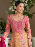 Pink-Yellow Ombre Georgette Heavy Embroidered Anarkali Gown