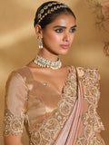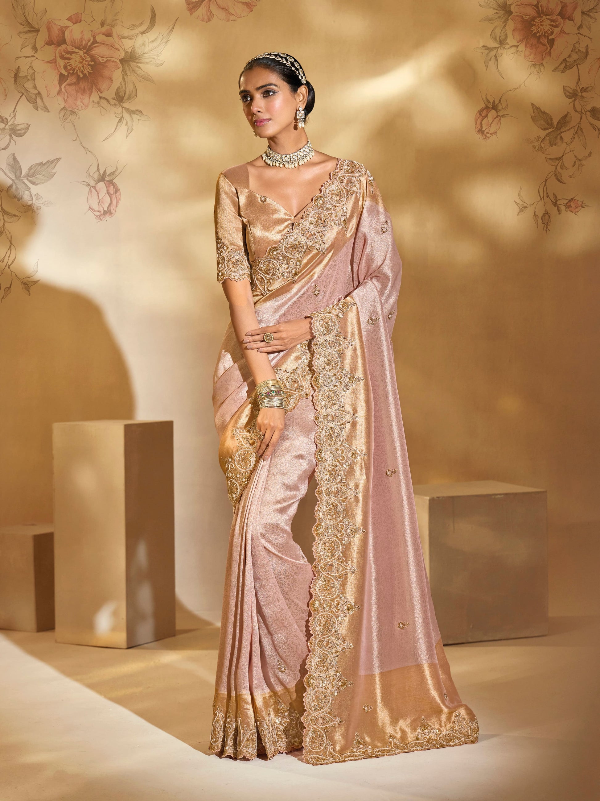 Pink Ziraf Silk Saree with Jari, Moti & Emerald Embroidery