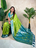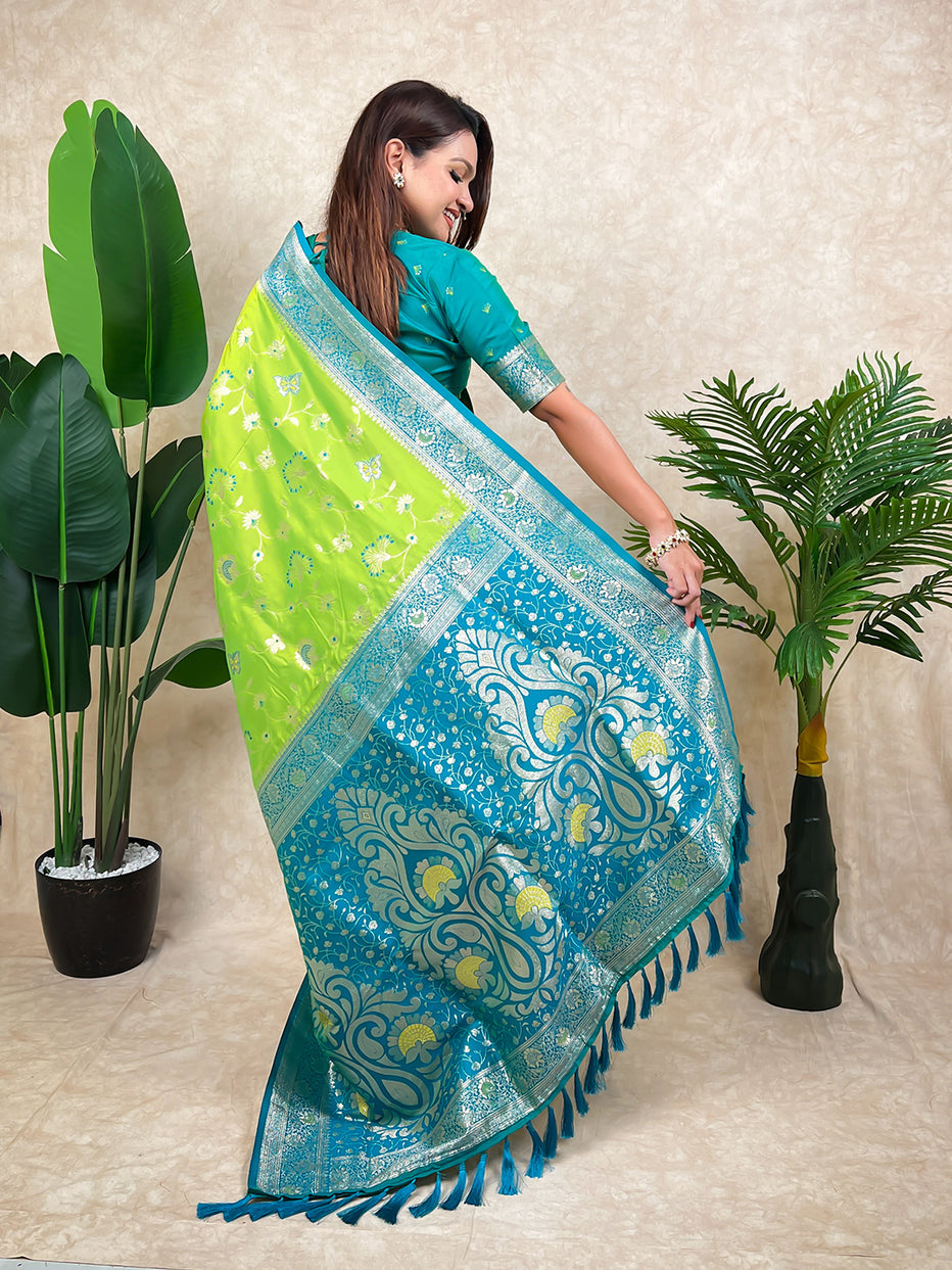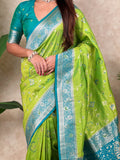 Pista Green Banarasi Jaal Zari Woven Silk Banarasi Saree