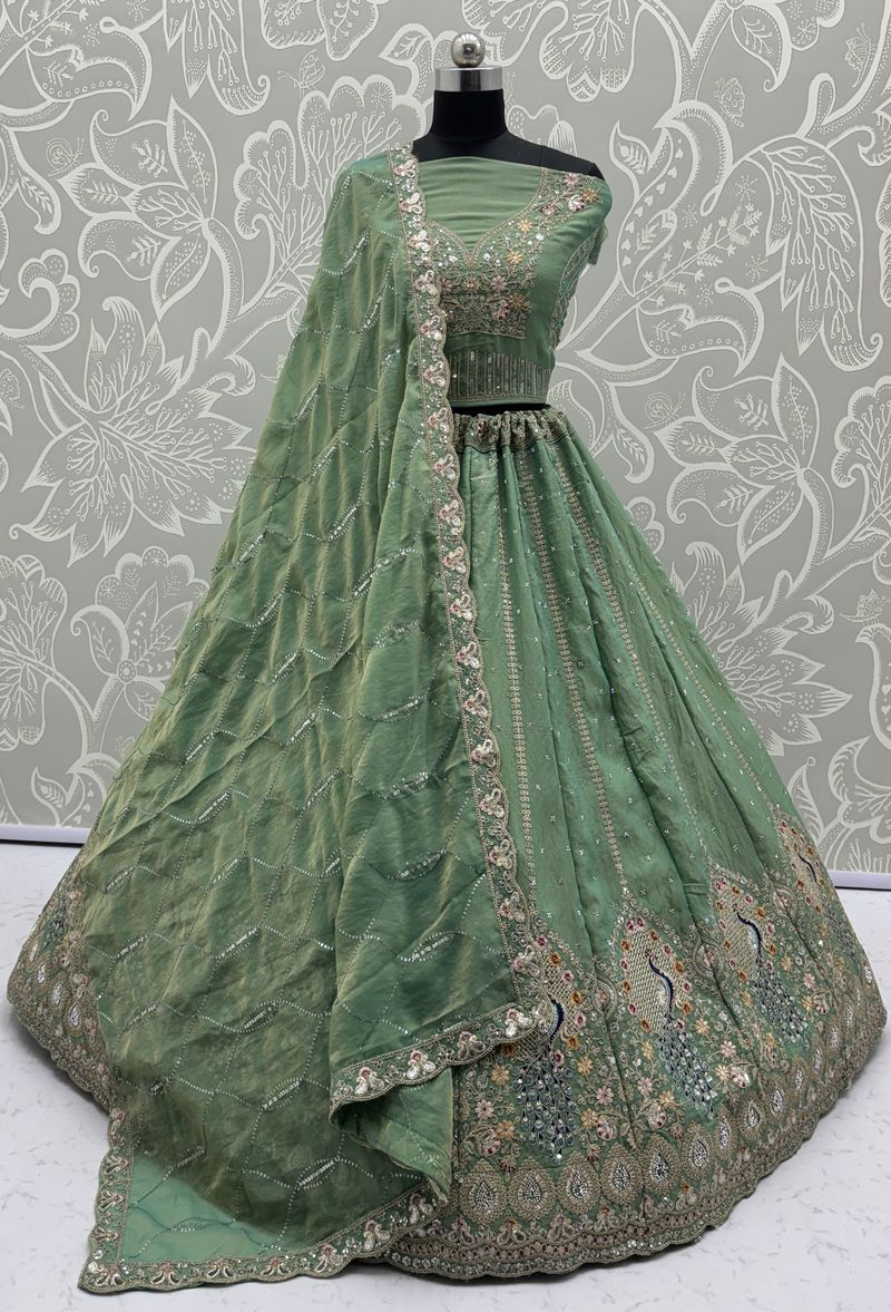 Pista Pure Soft Gadhwal Silk Heavy Embroidery Work Bridal Lehenga
