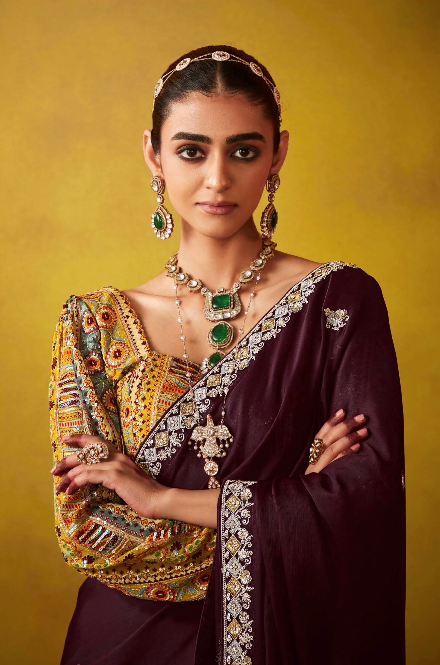 Plum Purple Glass Tissue Saree with Sequins Detailing
