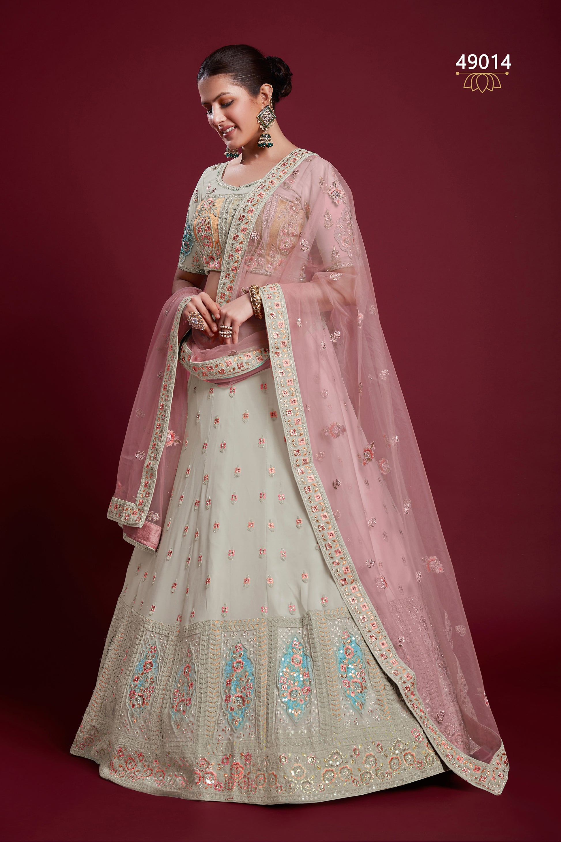 Discover our designer premium look lehenga, featuring intricate embroidery, luxurious fabrics, and a perfect blend of traditional and contemporary styles. Ideal for weddings and grand celebrations, this lehenga promises to make you the center of attention.