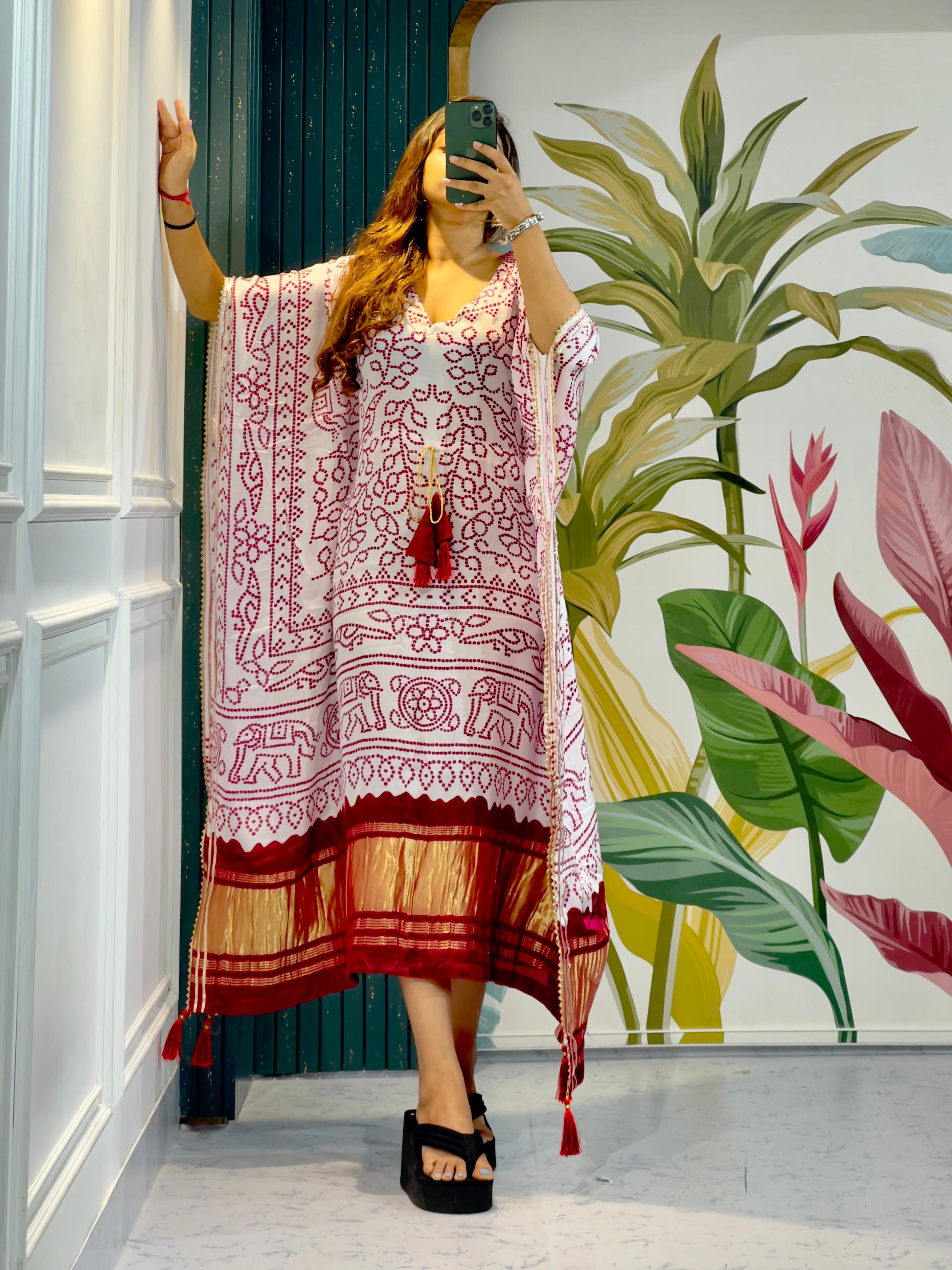 Pure Bandhani Gaji Silk Kaftan - Effortless Elegance for Every Occasion