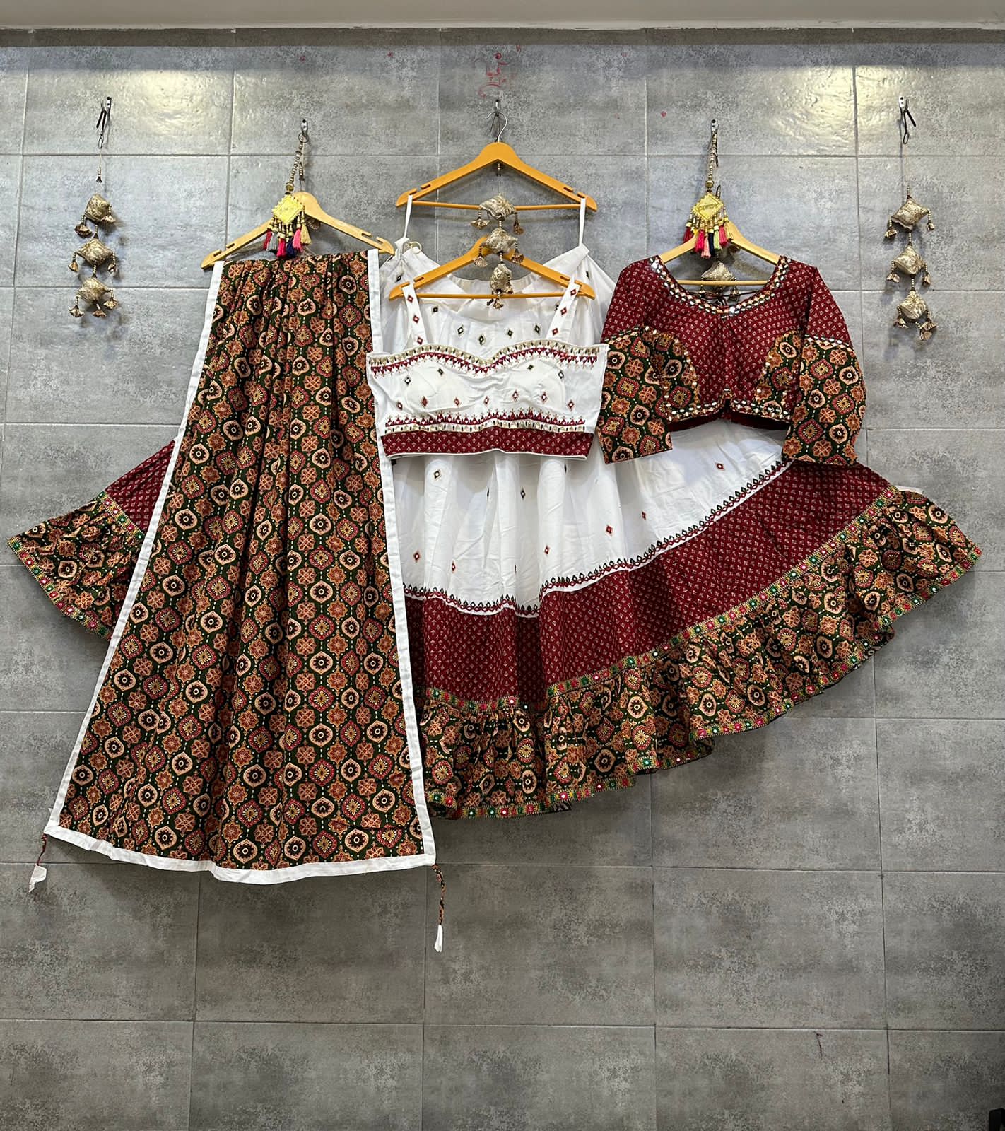 Pure cotton mirror work chaniya choli with double blouse comcept
