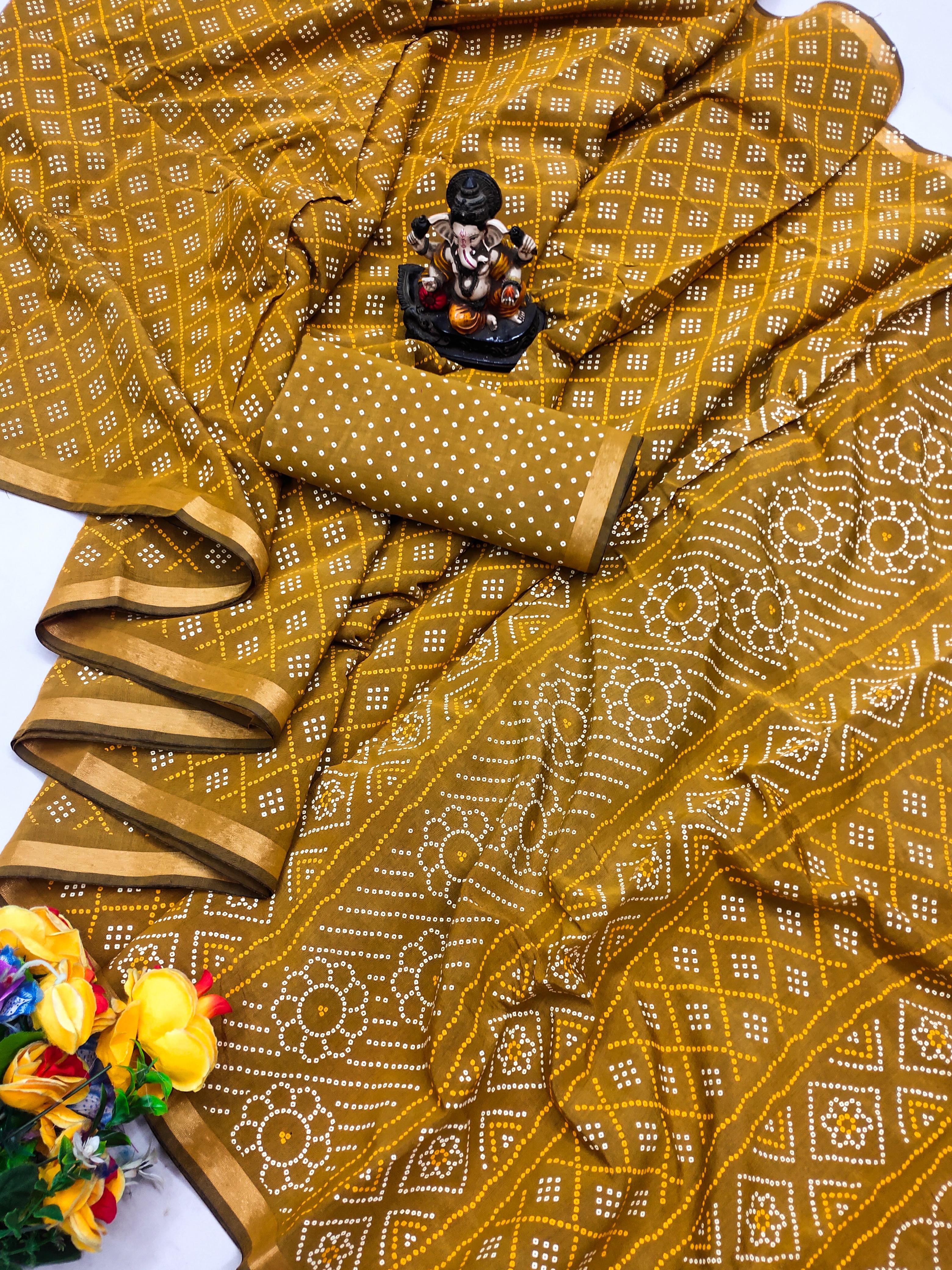 • Pure Patola And Bandhej Pattern Soft Light Weight Cotton Saree