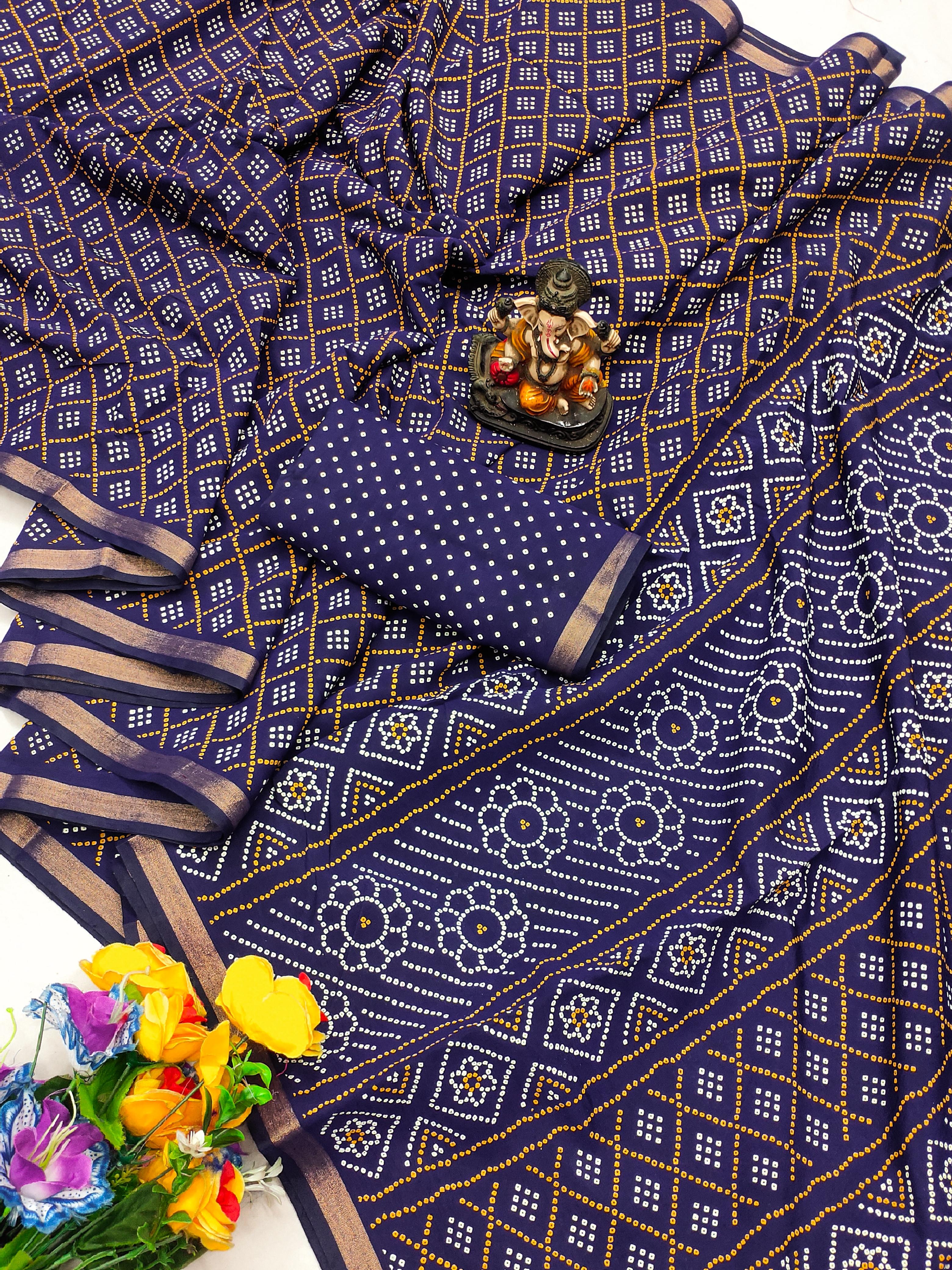 • Pure Patola And Bandhej Pattern Soft Light Weight Cotton Saree