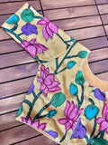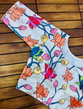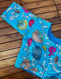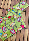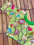 Pure silk fabric with hand paint all over blouse with pleated sleeves and antique