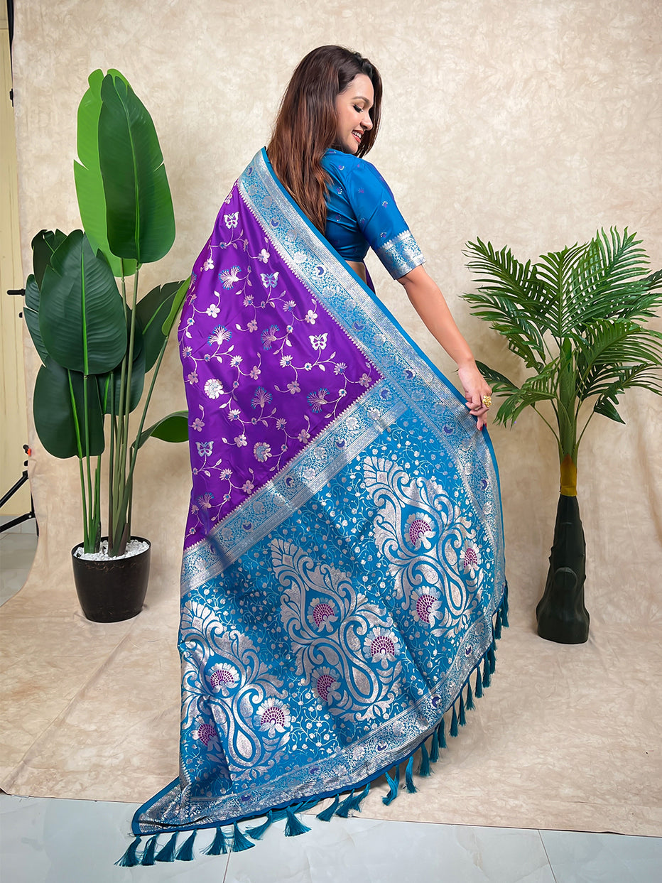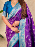 Purple Banarasi Jaal Zari Woven Silk Banarasi Saree
