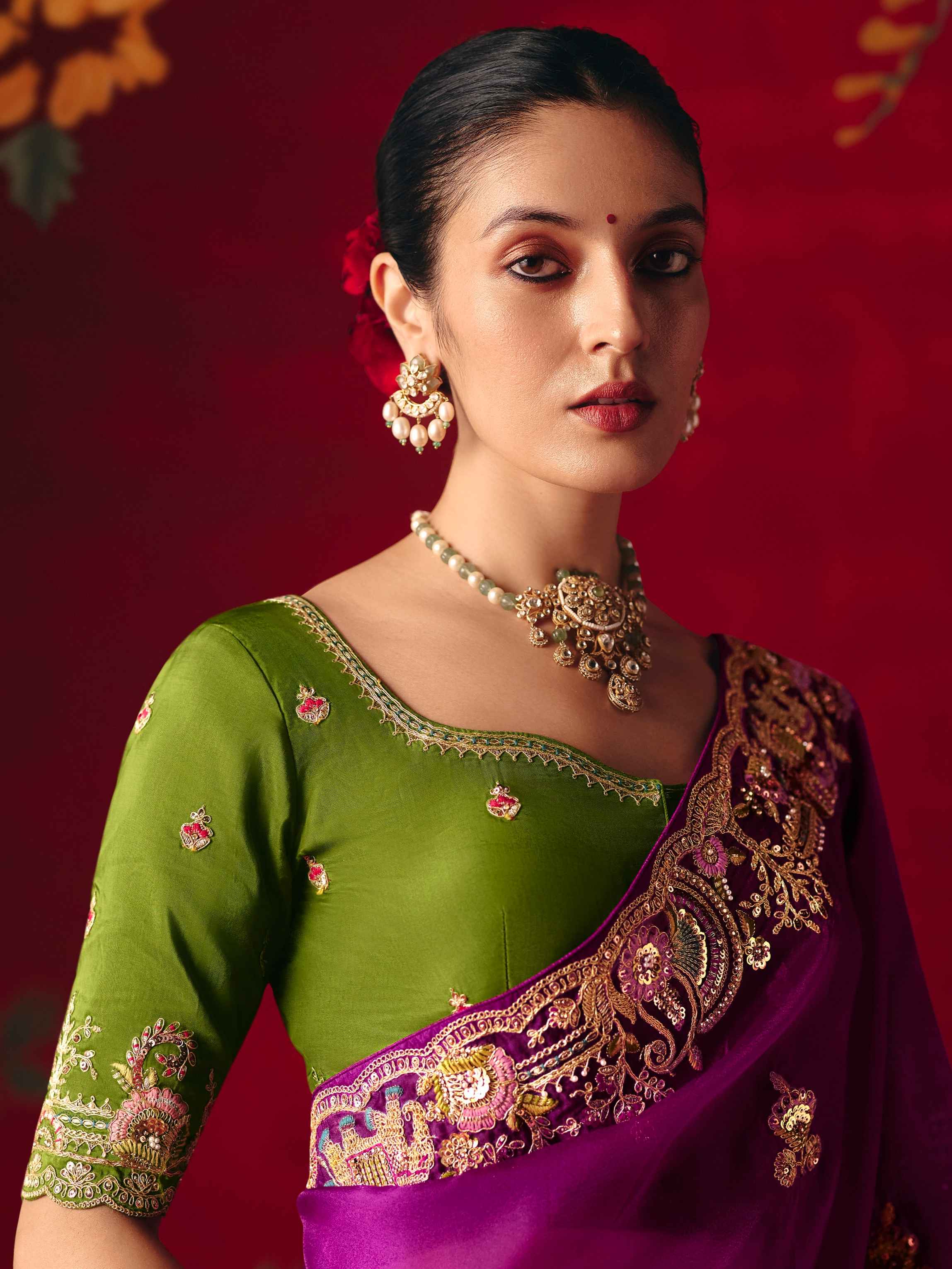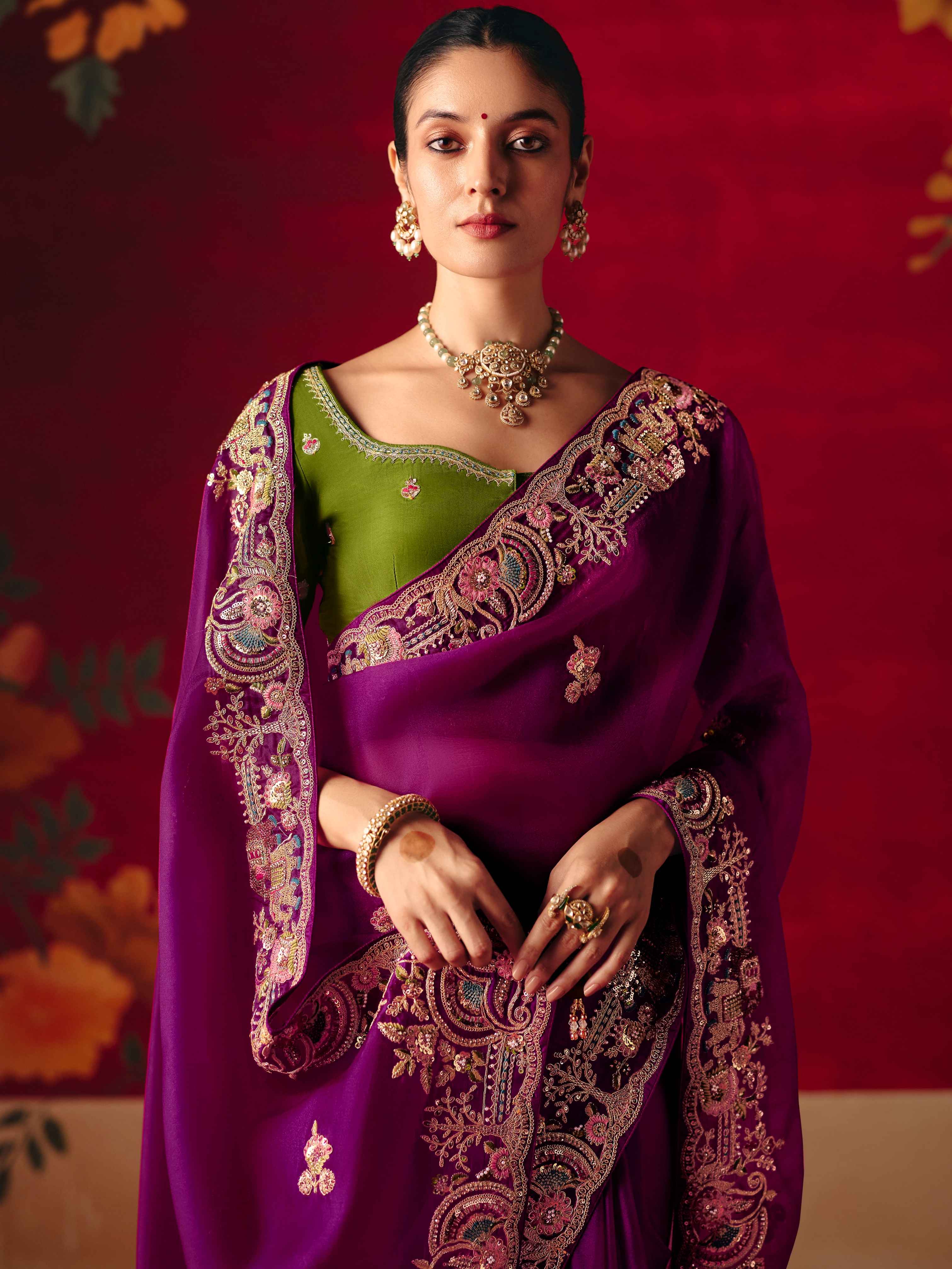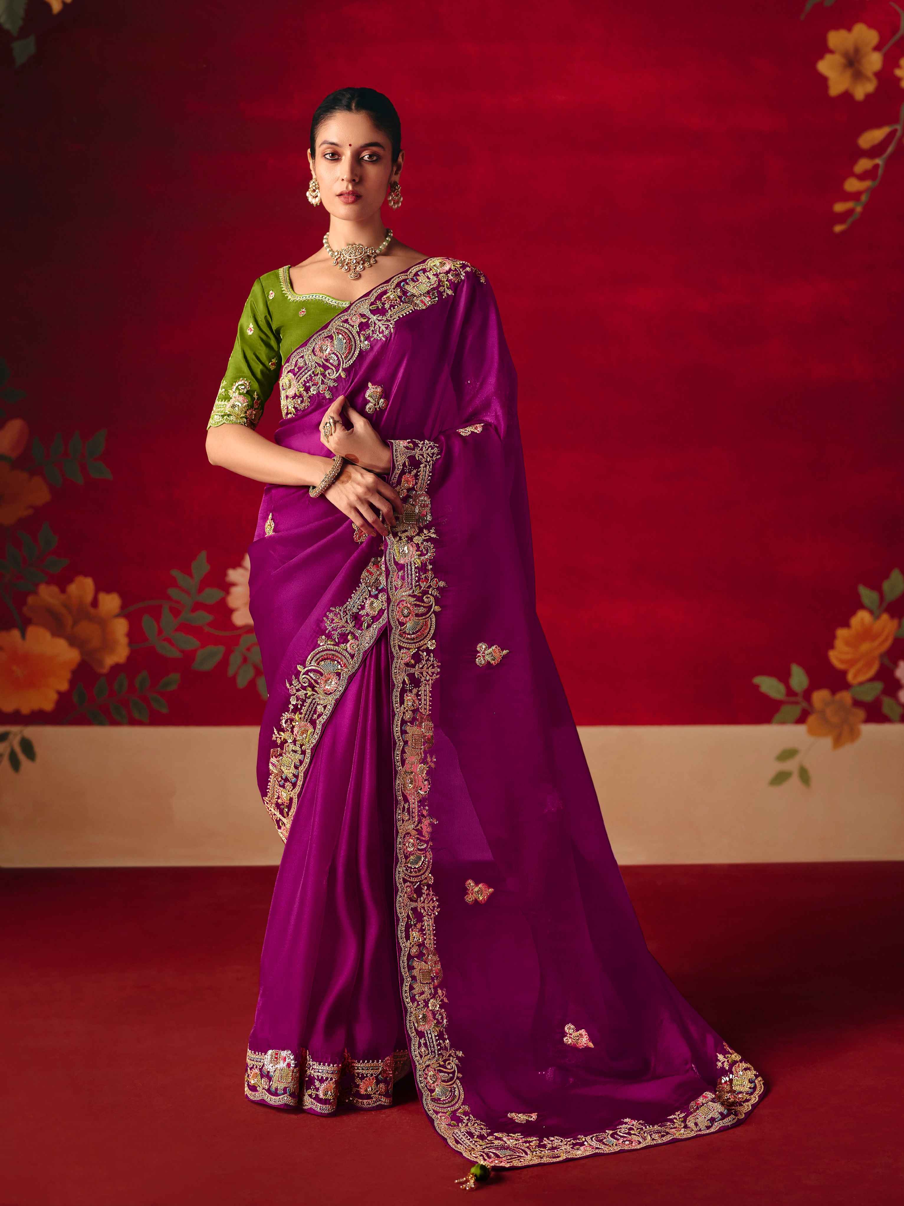 Purple Fancy Saree with Sequins Butti & Embroidered Border